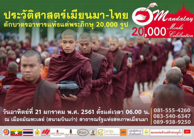 พรุ่งนี้ พิธีตักบาตรมัณฑะเลย์ 20,000 รูป ณ สนามบินเก่า เมืองมัณฑะเลย์ สาธารณรัฐแห่งสหภาพเมียนมา วันอาทิตย์ที่ 21 มกราคม พ.ศ. 2561 เริ่มพิธีเวลา 06.00 น. #ตักบาตรมัณฑะเลย์ #AlmsGiving #Mandalay #ธรรมกาย #dhammakaya