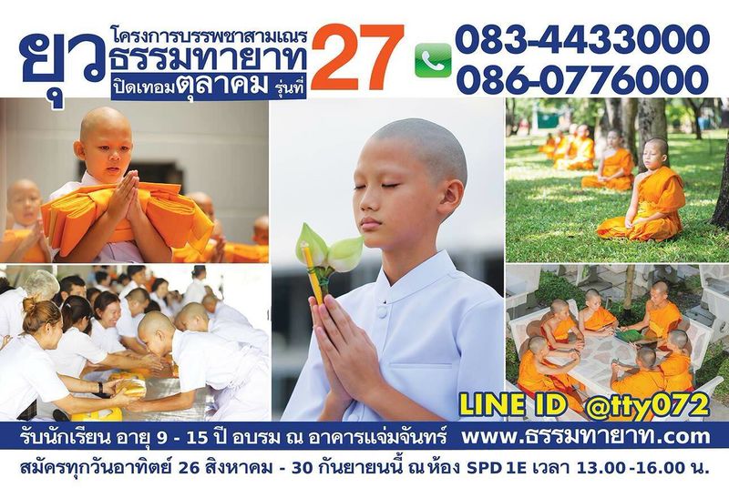 บวชสามเณรยุวธรรมทายาท รุ่นที่ 27 (โครงการ2 ปิดเทอมตุลาคม) อายุ 9-15 ปี