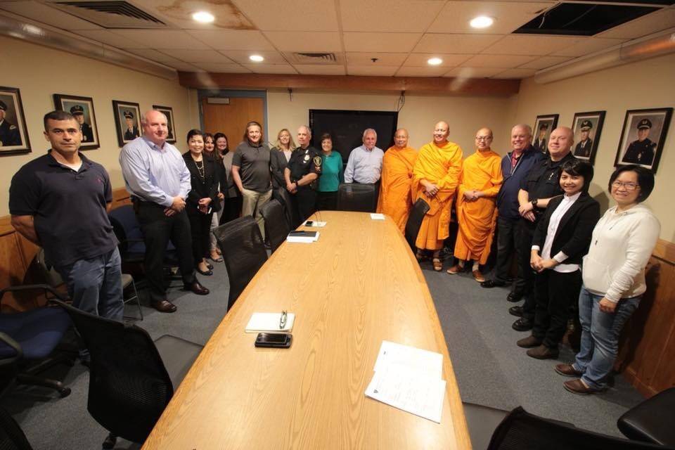 วัดพระธรรมกายบอสตัน ได้รับโอกาสจากผู้กำกับการตำรวจเมืองควินซี่ Mr. Paul Keenanให้จัดสอนสมาธิให้กับตำรวจในสำนักงานตำรวจเมืองควินซี่ โดยการประสานจาก กัลฯ สิรินทร์ วงศ์วิทยเวทย์ ทั้งนี้ พระครูภาวนาวิเทศ เจ้าอาวาสวัดพระธรรมกายบอสตัน ได้กล่าวทักทาย โดยมี พระภาสุระ ทนฺตมโน แนะนำเรื่องการนั่งสมาธิและประโยชน์ของสมาธิต่อการทำงานของตำรวจ จากนั้นทุกคนได้มีโอกาสนั่งสมาธิ ซึ่งทุกคนได้รับความสุข สงบ และผ่อนคลาย ทำให้เกิดความประทับใจเป็นอย่างยิ่ง เอาบุญมาฝากทุกท่านทั่วโลกนะคะ